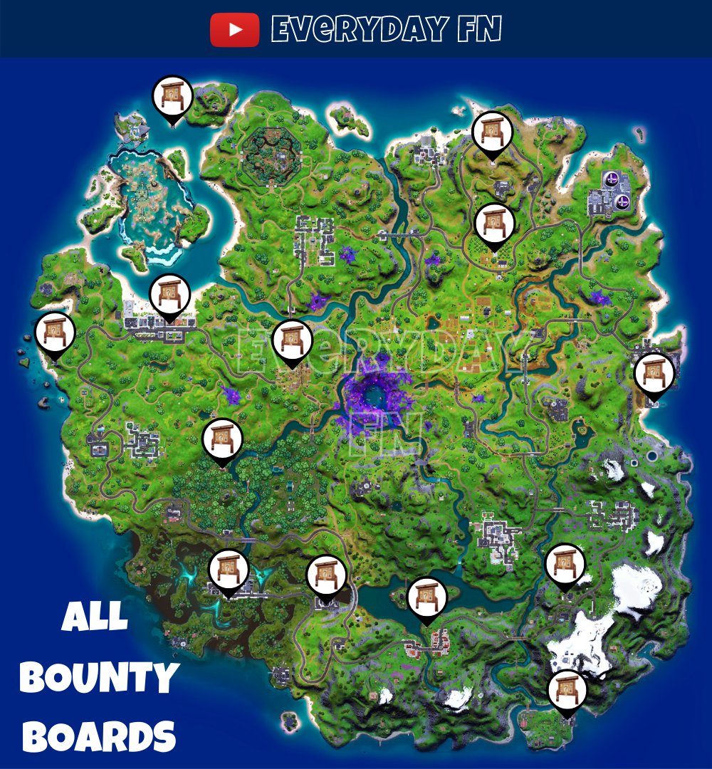 Web All Bounty Boards Locations in Fortnite - Accept a bounty from a Bounty Board within 30 seconds of landing - Complete a Bounty from Bounty Boards - How to Co. Web All Bounty Boards Map Locations in Fortnite Chapter 3 Season 1. We have provided a map pinpointing each location of.